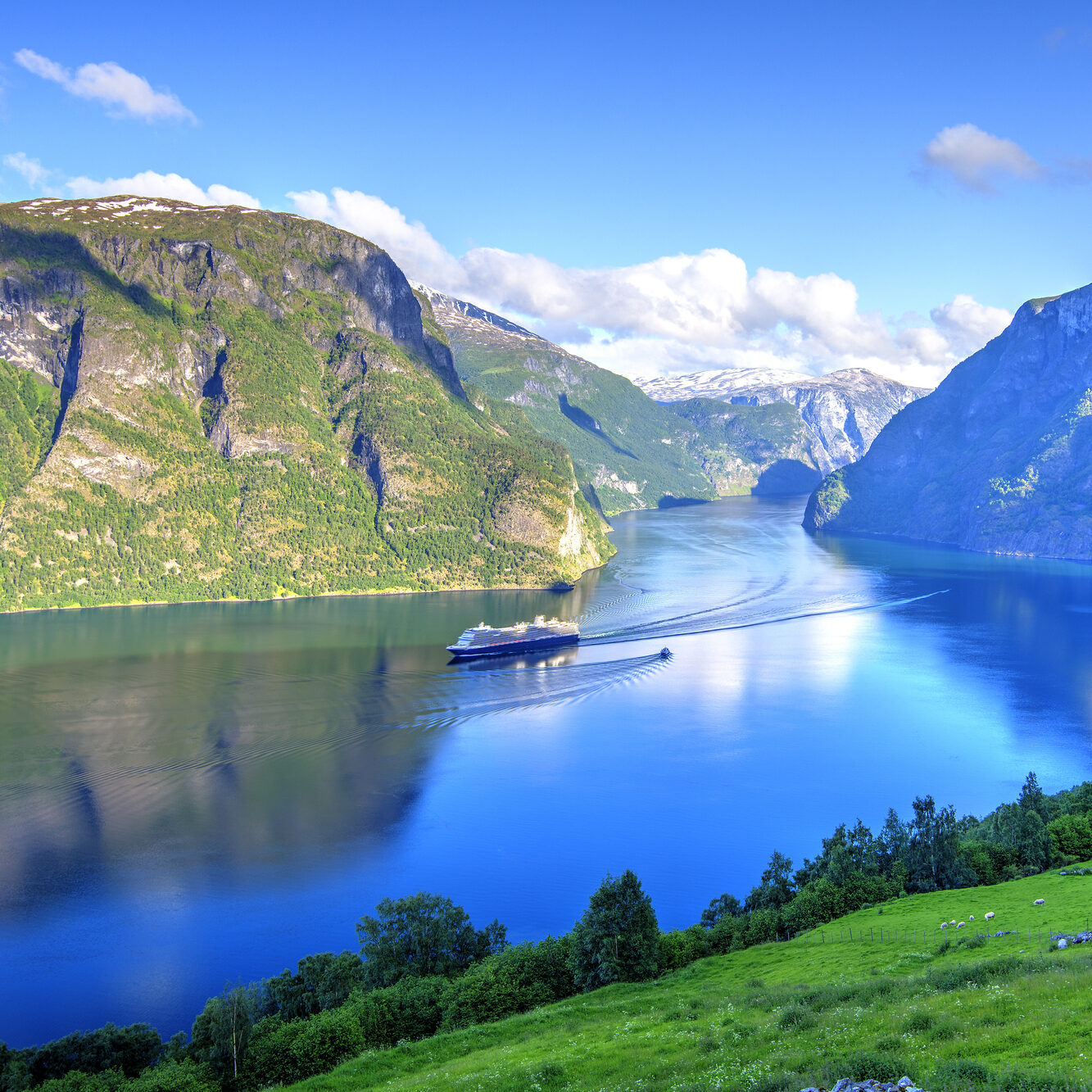 Sail through the breathtaking main routes of the lush Norwegian fjords, shaped by the passage of time, and the mystical blue Alaska fjords, where majestic nature and profound serenity embrace all who visit.