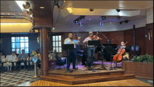 Guests danced gracefully to the string music performed by the ship’s resident band at the ballroom dance party held in one of the ship’s bar lounges. Set against the backdrop of live performances – beautifully played by a band that regularly delights guests with its music – this was a truly special time to step elegantly onto the dance floor. Everyone enjoyed a luxurious and memorable experience that only live music can offer.