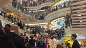 A welcome ceremony was held to celebrate everyone’s embarkation and the departure of the global voyage. Known as one of the highlights of the cruise, this party saw voyage participants dressed in their finest, enjoying the ceremony and dance party. This glamorous moment marked the beginning of the journey, filling everyone with excitement and anticipation for the days ahead.